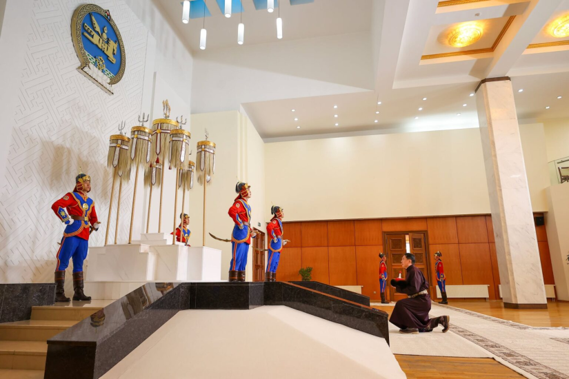 Ерөнхийлөгч У.Хүрэлсүх Есөн хөлт цагаан туганд хүндэтгэл илэрхийлж, Төрийн золголт хийв